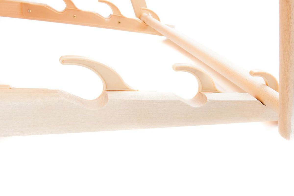 Bukové laťky tvořící konstrukci jsou dohladka broušené a frézované, aby se děti nezranily. Lehátko snadno a rychle složíte a přenesete.