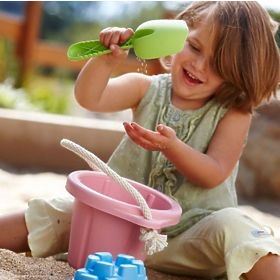 Barevná sada na písek vyrobená z recyklovaných materiálů. Sada bude skvělou hračkou pro děti do pískoviště nebo na pláž. Uplatnění pro ní najdete vždy, ať už při kopání jam, hrabání písku nebo stavění písečných hradů.