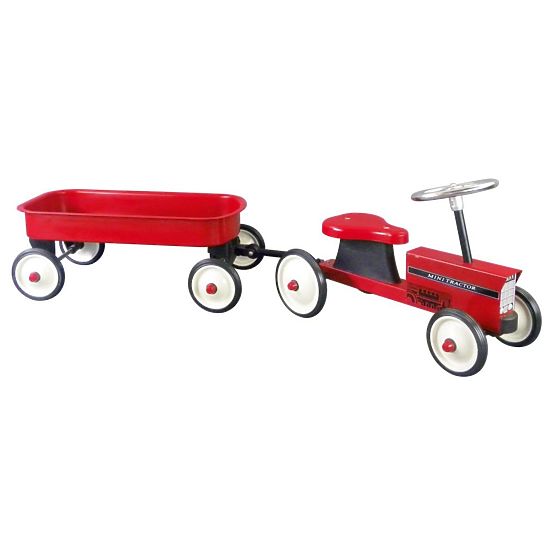 Červený přívěs vyrobený z kovu bude ideální pro přepravu hracích kostek, míčků a mnoho dalších hraček. Přívěs můžete kdykoli odpojit.