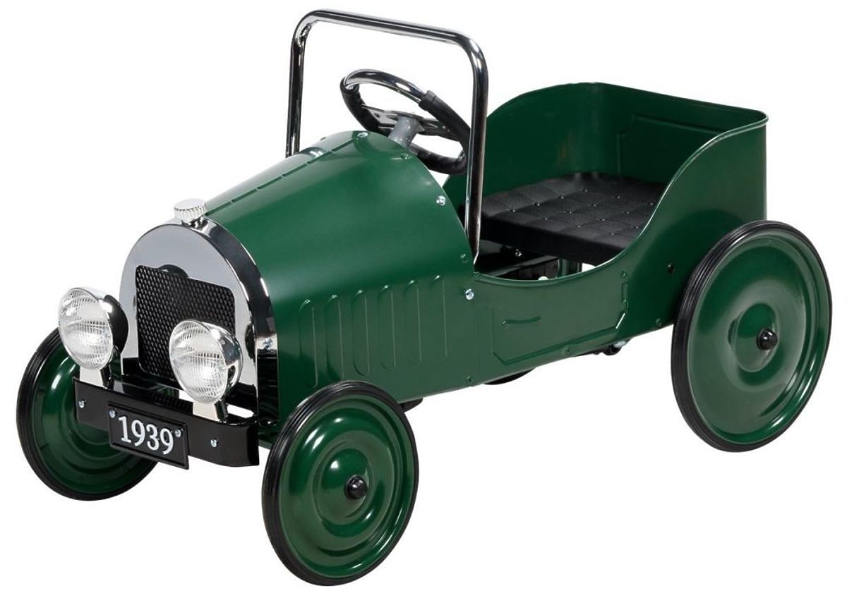 Stylové retro odrážedlo v podobě autíčka se šlapacími pedály nadchne každého malého milovníka rychlé jízdy.