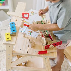 Obrovská dílna a stavebnice v jednom zaručují dlouhé hodiny zábavy pro všechny malé stavitele. Tato vzdělávací hračka vybízí dítě k manuální činnosti, rozvíjí jemnou motoriku a dětskou fantazii. Už při samotném skládání dílny si užijete spoustu legrace. Po složení stolu si můžete s dílnou hrát na mnoho různých způsobů. Jednotlivé prvky lze přišroubovat ke stolu a s jejich pomocí stavět fantastické konstrukce.