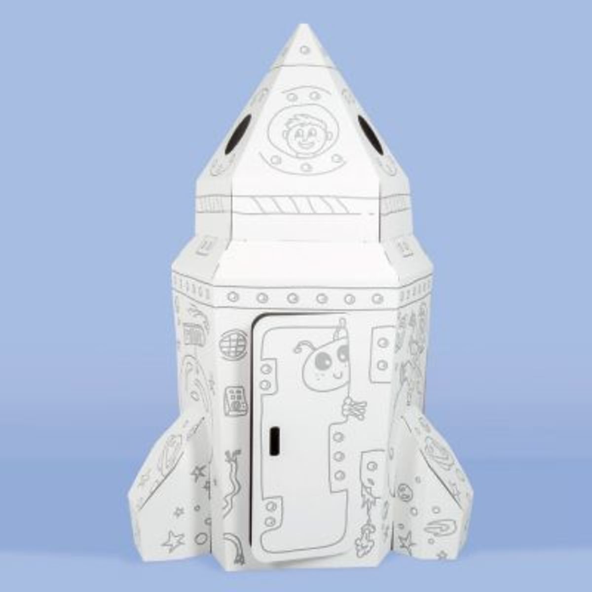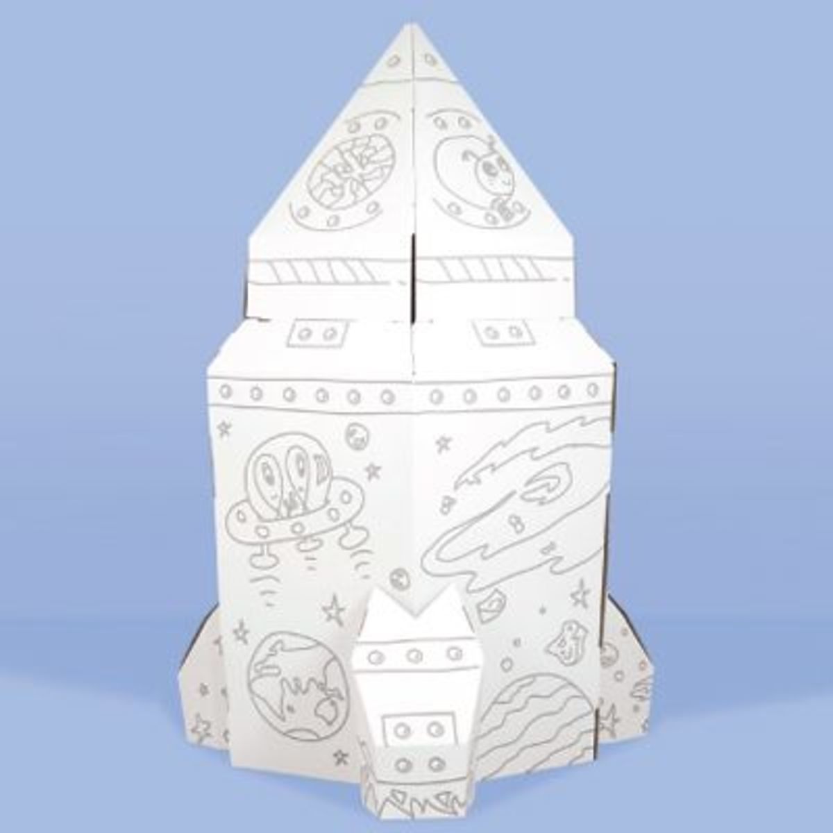 Raketa je vyrobena z 5vrstvé bílé vlnité lepenky, k sestavení a vybarvení. (nevyžaduje lepidlo ani nůžky!)