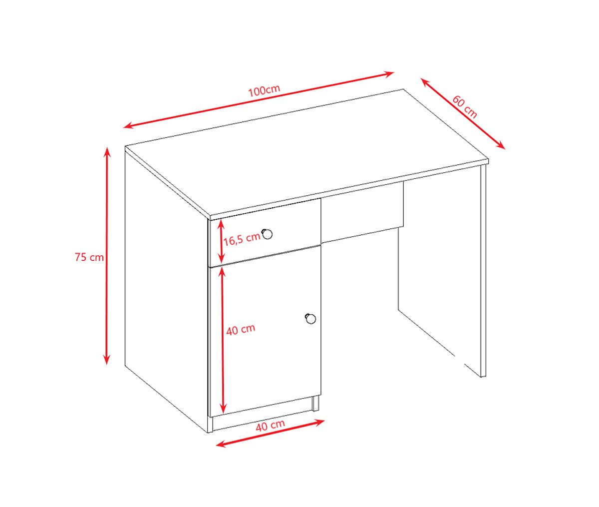 Součástí stolu jsou 2 úložné prostory v podobě šuplíku a skříňky.