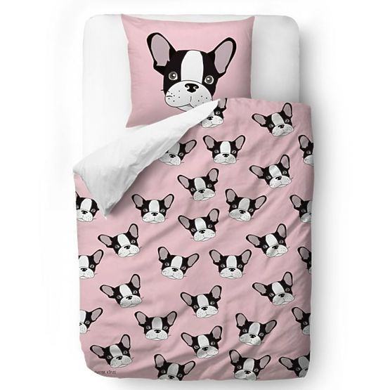 Babynabytek.cz » Lůžkoviny / Povlečení / Bavlněné povlečení / Butter Kings Povlečení Buldoček - světle růžová - přikrývka 135 x 200 cm polštář: 60 x 50 cm