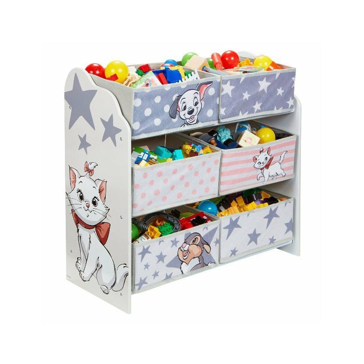 Krásný barevný organizér na hračky s motivy 3 hrdinů z klasických pohádek Studia Disney. Štěňátko dalmatina z příběhu 101 dalmatinů, koťátko Maria z filmu Aristokočky a roztomilý králíček Dupík z dojemného filmu Bambi. Všichni tři hrdinové jsou sladěni s barevným pozadím v barvách šedé, bílé a růžové.