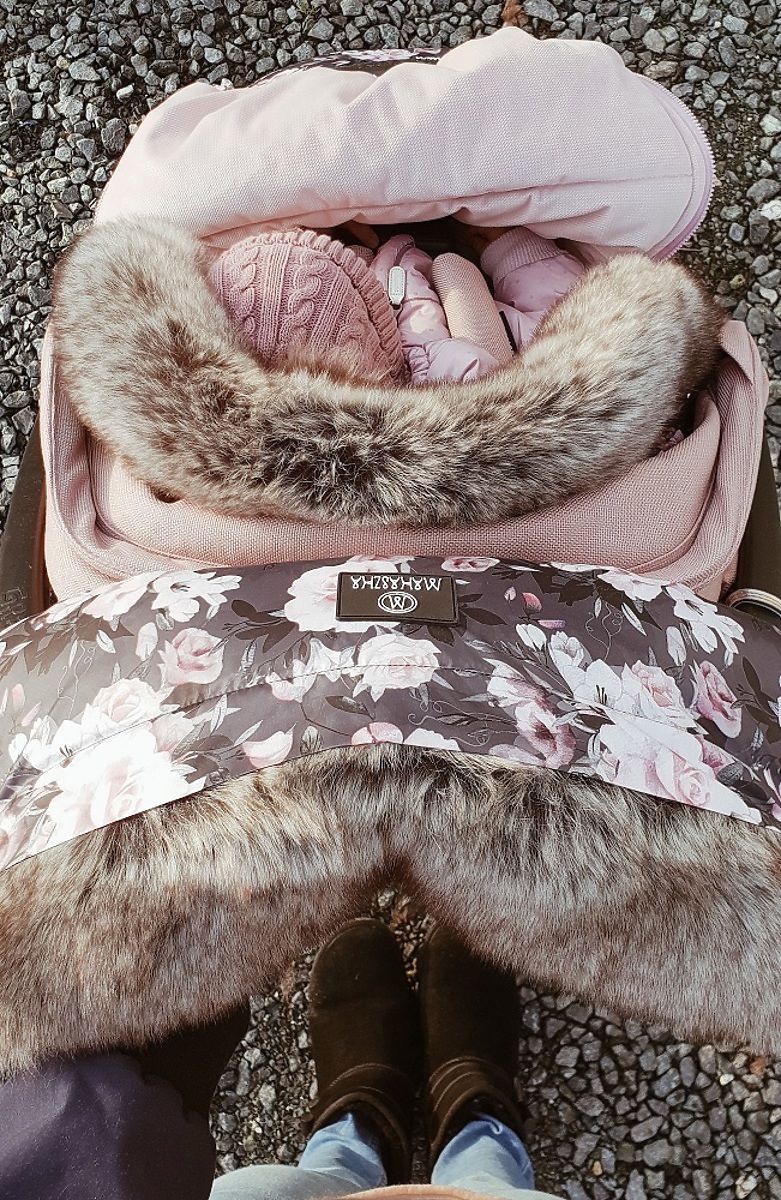 Teplý, pohodlný a zcela nepromokavý fusak vhodný do autosedačky, kočárku nebo sáněk. Elegantní spojení nočních květin s kožešinou dá dokonale vyniknout vašemu kočárku.