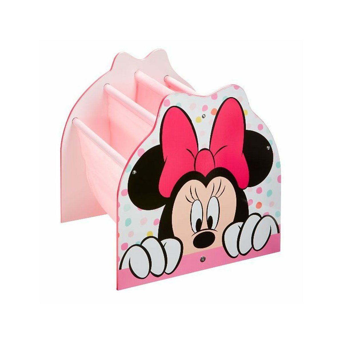 Krásná knihovnička s oblíbenou myškou Minnie rozzáří pokoj každé malé princezny. Závěsné přihrádky slouží k odkládání knížek a časopisů všech tvarů a velikostí. Výška knihovny je přizpůsobena tak, že si Vaše dítko může samo vybrat oblíbenou knihu a vydat se tak do světa fantazie. Tento designový kousek je zábavný pro děti a praktický pro rodiče.