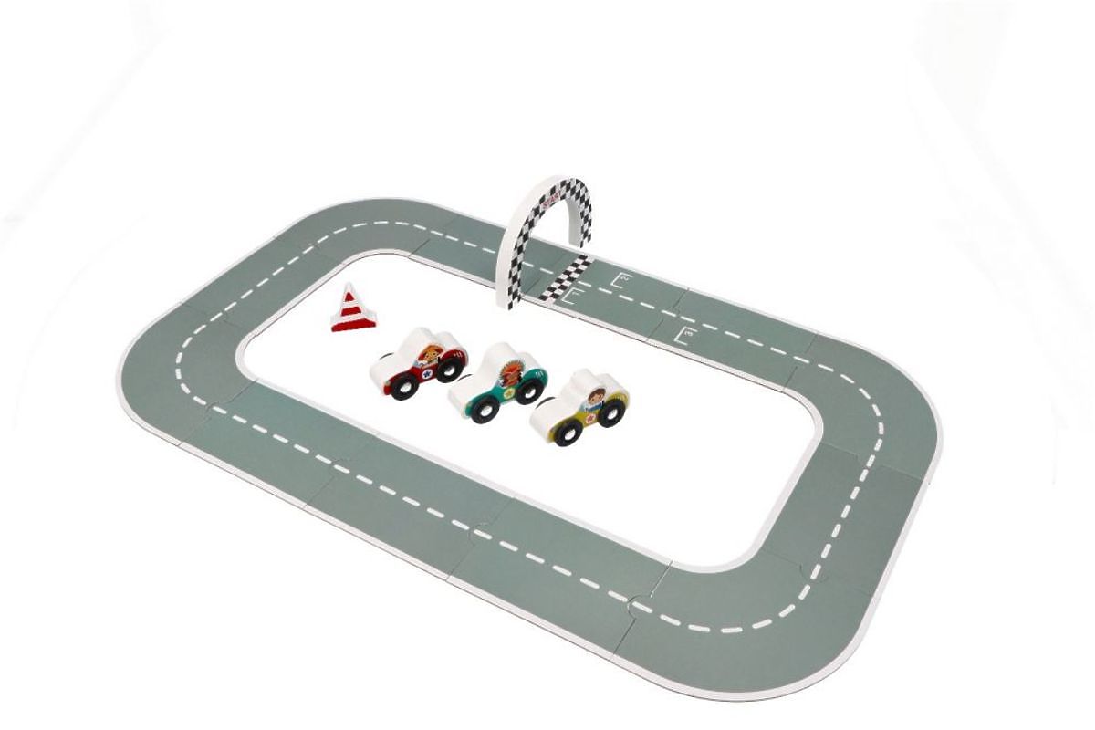 U této jednoduché hračky jsme přemýšleli o mnoha detailech. Každé auto má jiného řidiče, aby byl závod ještě více zajímavý. Startovací puzzle mají značená místa pro automobily, stejně jako na skutečné závodní dráze. Nad startem můžete nastavit speciální bránu. A celek doplňuje kufr, do kterého můžete uložit svůj set. Díky kufříku získává celá hra také mobilitu, protože si ji můžete snadno vzít kamkoli s sebou.
