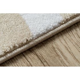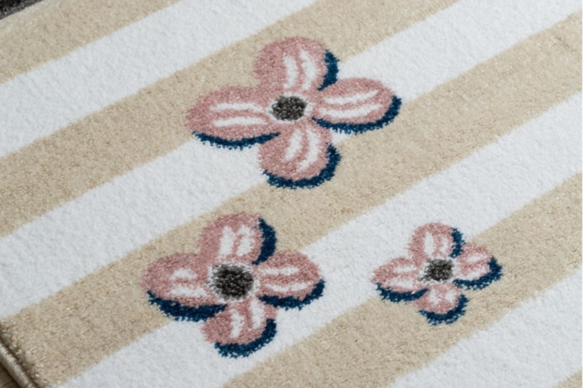 Díky kombinaci krémově béžové a bílé koberec skvěle ladí s ostatním nábytkem v dětském pokojíku, navíc lze jednoduše přemístit podle potřeby. Koberec je vhodný pro podlahové topení.