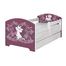 Dětská postel s bezpečnostní zábranou s motivem kočičky Marie z dílny Disney studia. Součástí postele jsou dvě zábrany a rošt z borovicového masivu.