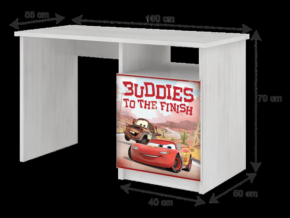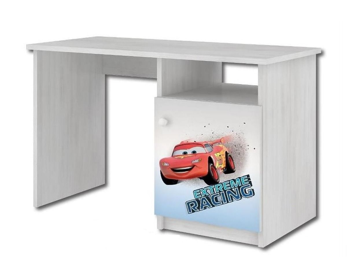 Dětský psací stůl s motivem McQueena, hlavního hrdiny filmového trháku Auta, v dekoru norské borovice. Součástí stolu jsou dva úložné prostory - police a skříňka. Vyrobeno z kvalitní MDF desky o tloušťce 18 mm.