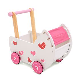 Dřevěný kočárek pro panenky, který během procházek může sloužit také jako tlačící chodítko. Kočárek pomáhá dítěti udržet stabilitu a urychluje výuku chůze. Rukojeť je umístěná ve vhodné výšce pro malé děti. Pro větší bezpečnost je na kolech speciální protiskluzová úprava.