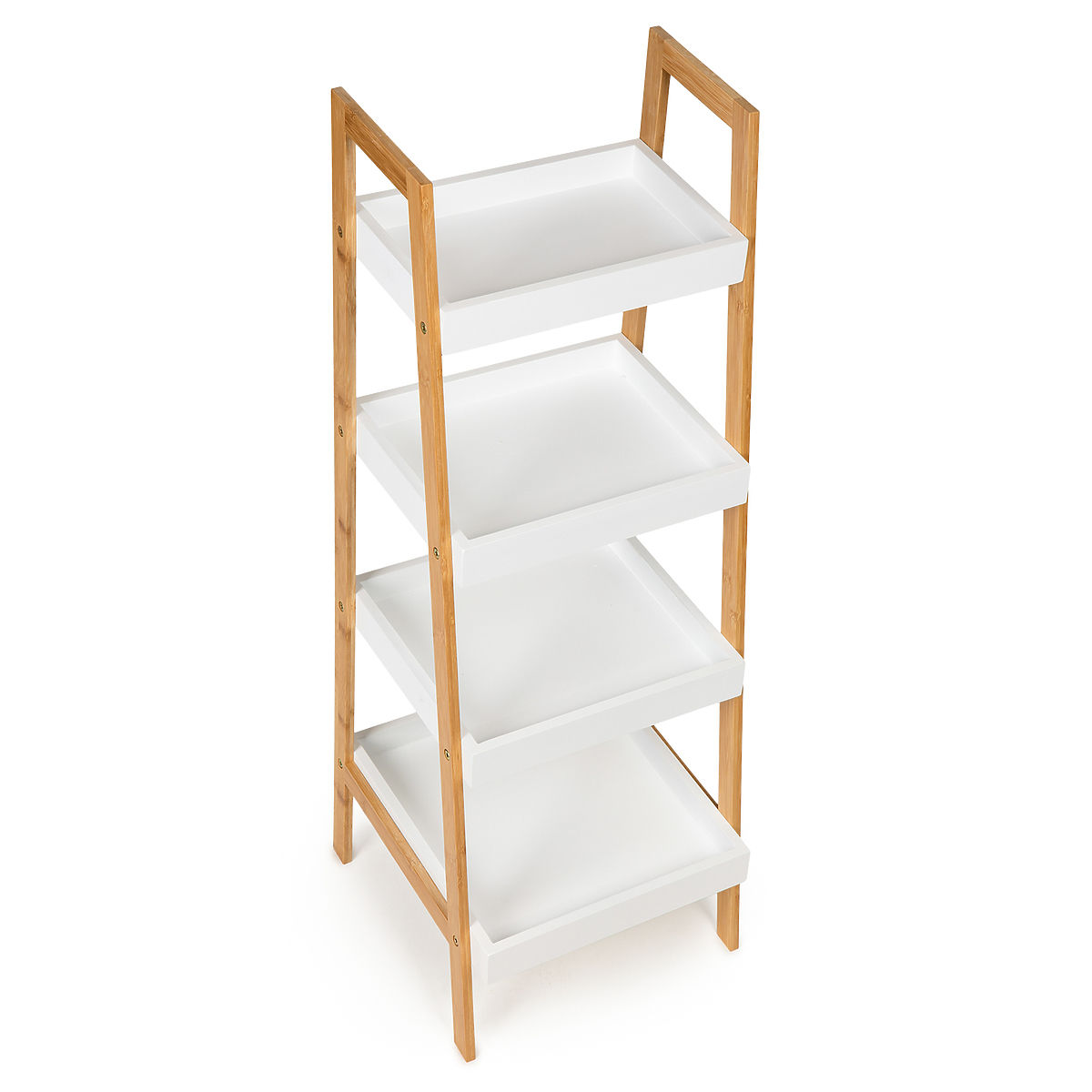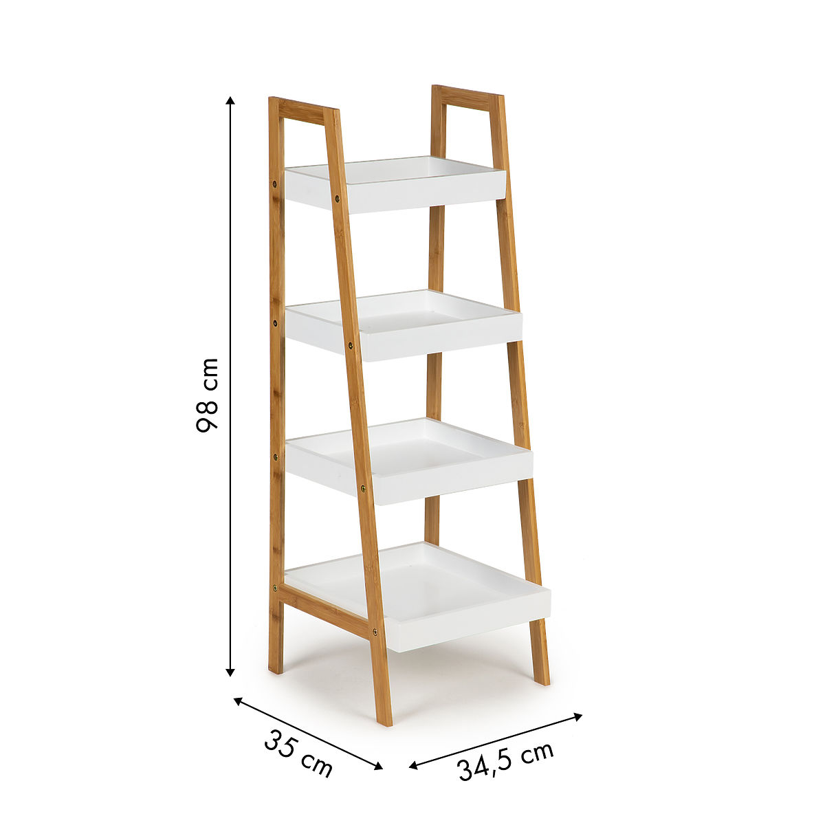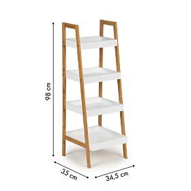Policový regál Bamboo v zajímavé kombinaci bambusového dřeva s bílými policemi se skvěle hodí pro jakýkoliv typ interiéru.