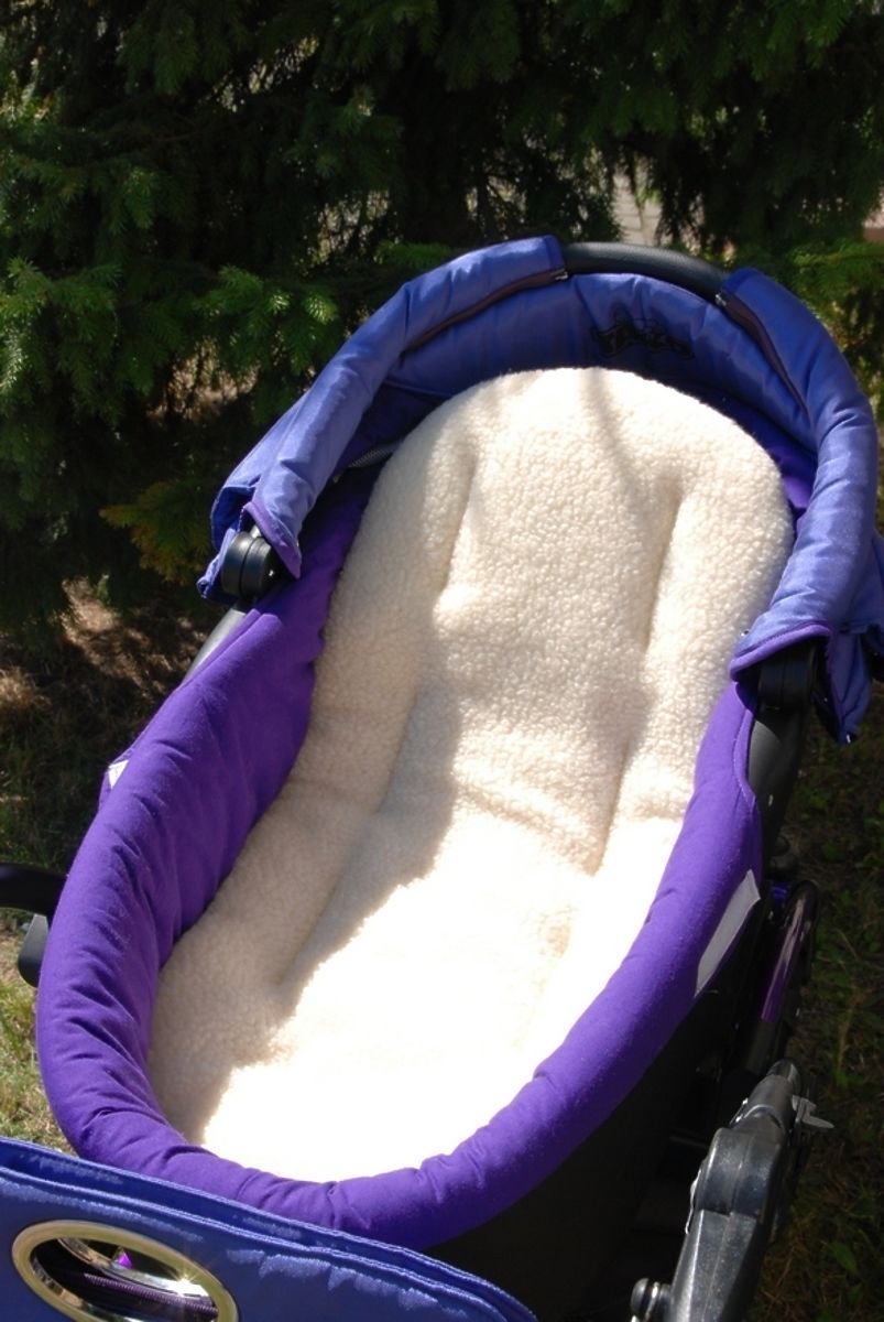 Podložka do kočárku z elastické merino vlny. Vhodná rovněž do sáněk.