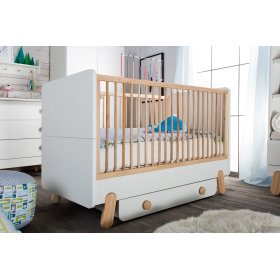 Velkou výhodou této postýlky je, že se dá proměnit na klasickou postel o rozměrech 140 x 70 cm. Postelový rošt je součástí.