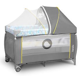 Cestovní postýlka Stefi Yellow Lemon ve žluto-šedé barevné kombinaci se skvěle hodí domů i na cesty. Skládací matrace a stěny ze vzdušného materiálu zajistí .. více