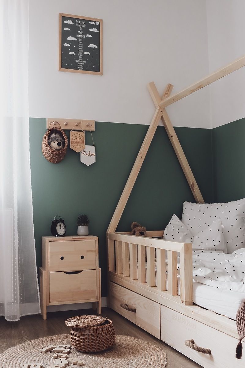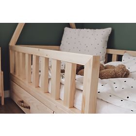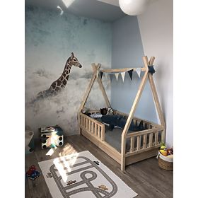 Stylová dřevěná postel TIPI o rozměrech 180x80 cm se zábranou a úložným boxem se stane skvělou součástí vybavení každého dětského pokoje. Přes den vytvoří útulný hrací koutek a v noci zase bezpečné místo na spaní.