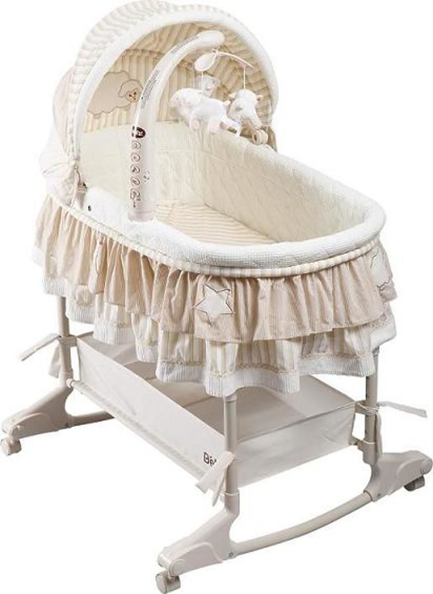 Jemné světlé barvy a nádherný design kolébky. Kolečka, které lze schovat nebo zabrzdit. Prostorný košík, variabilně nastavitelné vibrace, noční světlo, jemné měnící se světýlko, které pomáhá při usínání miminka.