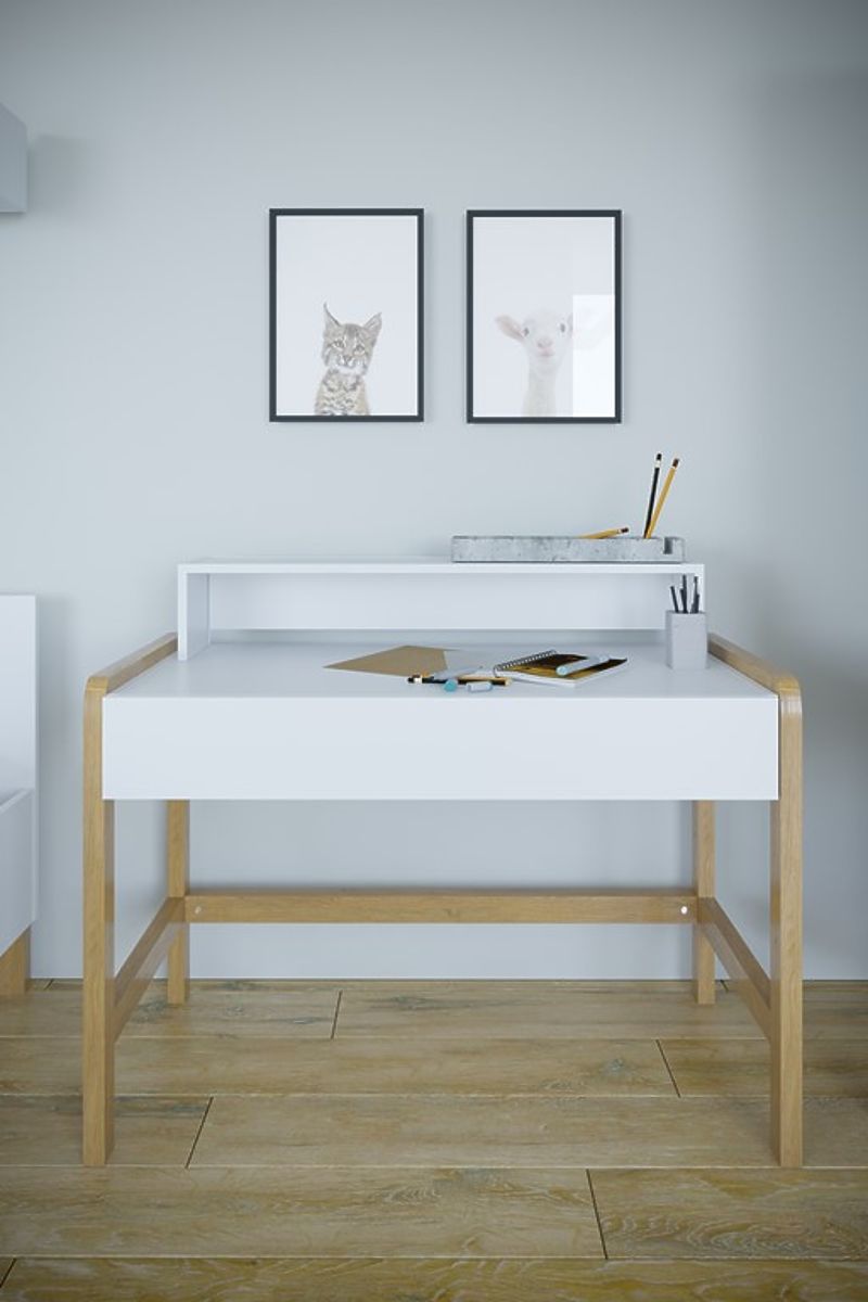 Dětský bílý psací stůl Viktor ve skandinávském stylu dodá šmrnc každému pokojíku. Tento stůl je speciálně navržen tak, aby vytvářel ideální podmínky pro rozvoj dítěte.