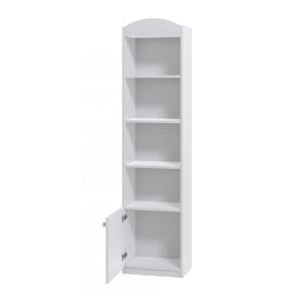 Bílý regál Simple je úzký a vysoký úložný kus nábytku. Vyrobený je z bílého lamina o tloušťce 18 mm. Skládá se ze 4 otevřených poliček a jednou uzavíratelnou skříňkou.