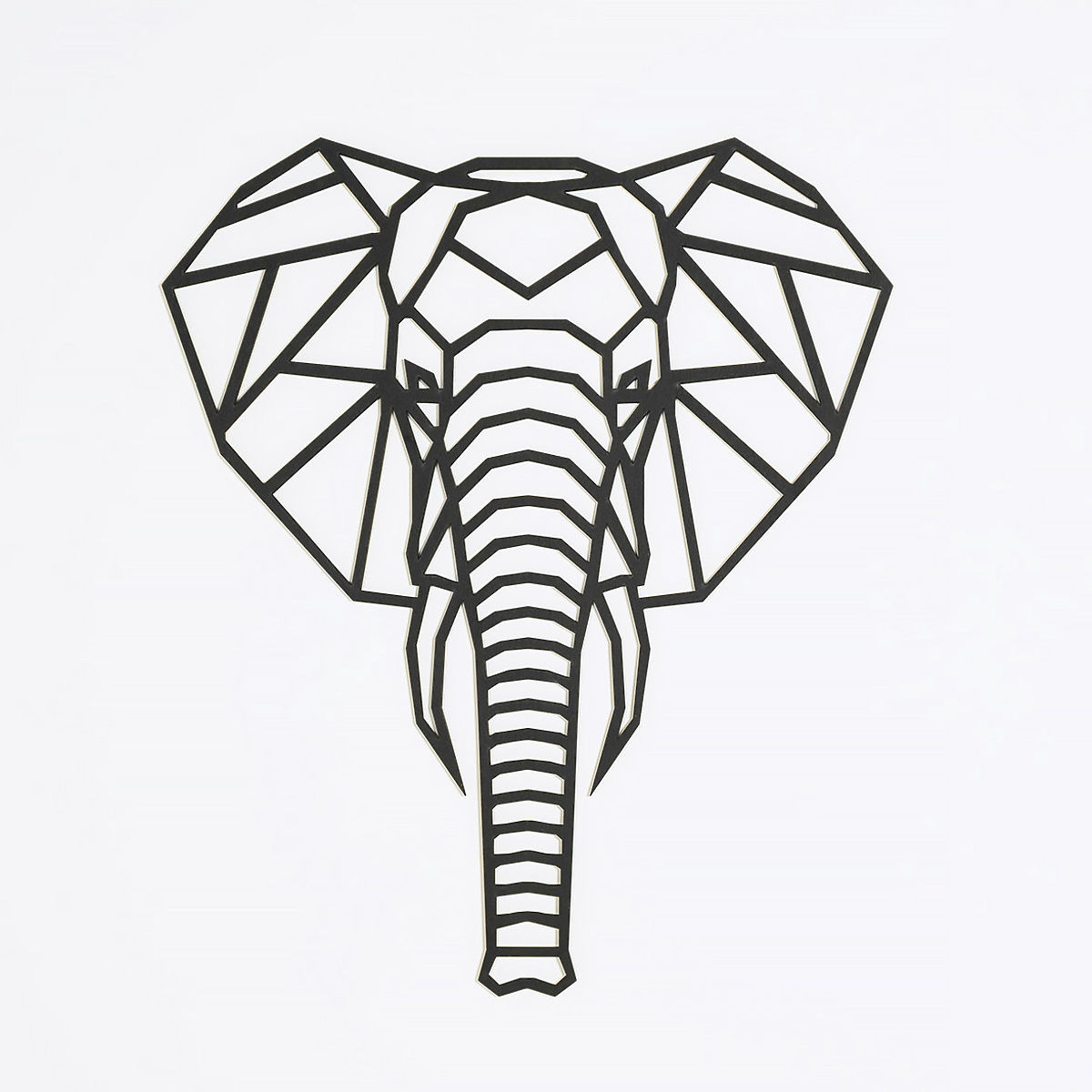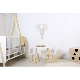 Dřevěný geometrický obraz ve tvaru Slona. Závěsná dekorace z překližky je vhodná do dětského pokoje ve skandinávském stylu.