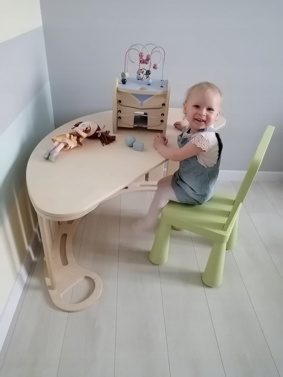 Pultík k montessori houpačce Lila nabízí další možnosti, jak si hrát a tím probouzet fantazii vašeho dítěte. Pultík má vícero využití, například na hraní rolí - obchůdek, škola. Skvěle taky poslouží jako plocha pro hraní si s autíčky, stavění kostek, kreslení a další aktivity.