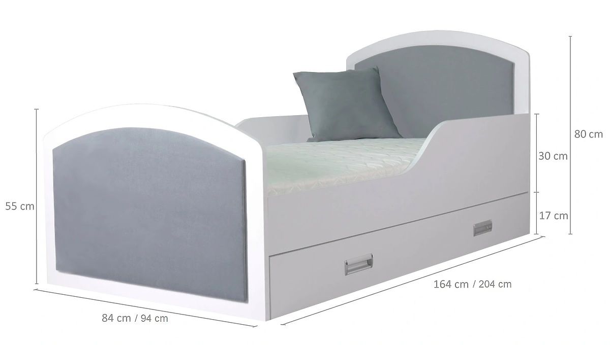 Bočnice postele se směrem k hlavě pozvolna zvedají a tvoří tak přirozenou zábranu postele.