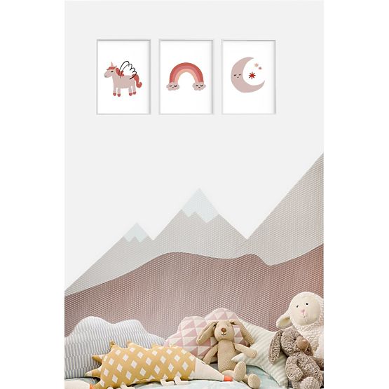 Pěnová ochrana zdi za postel v podobě béžových vrcholků hor zútulní spací prostor a poskytne dětem pohodlný a bezpečný spánek. Měkká pěna izoluje před chladem od studené zdi a navíc chrání stěnu před nechtěným poškozením.
