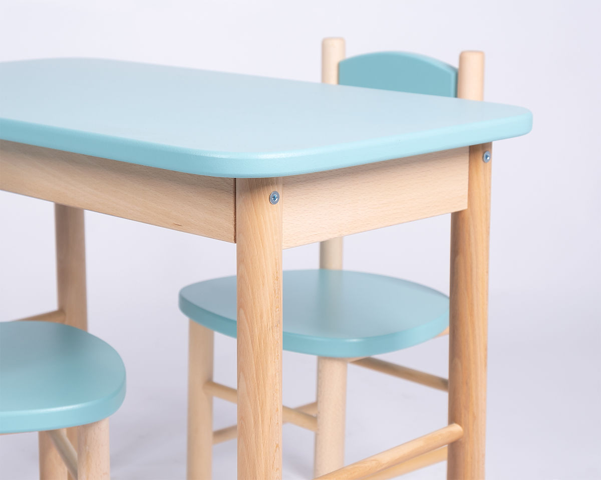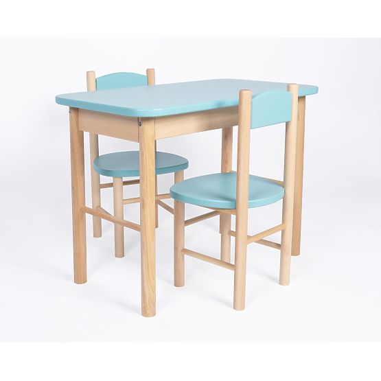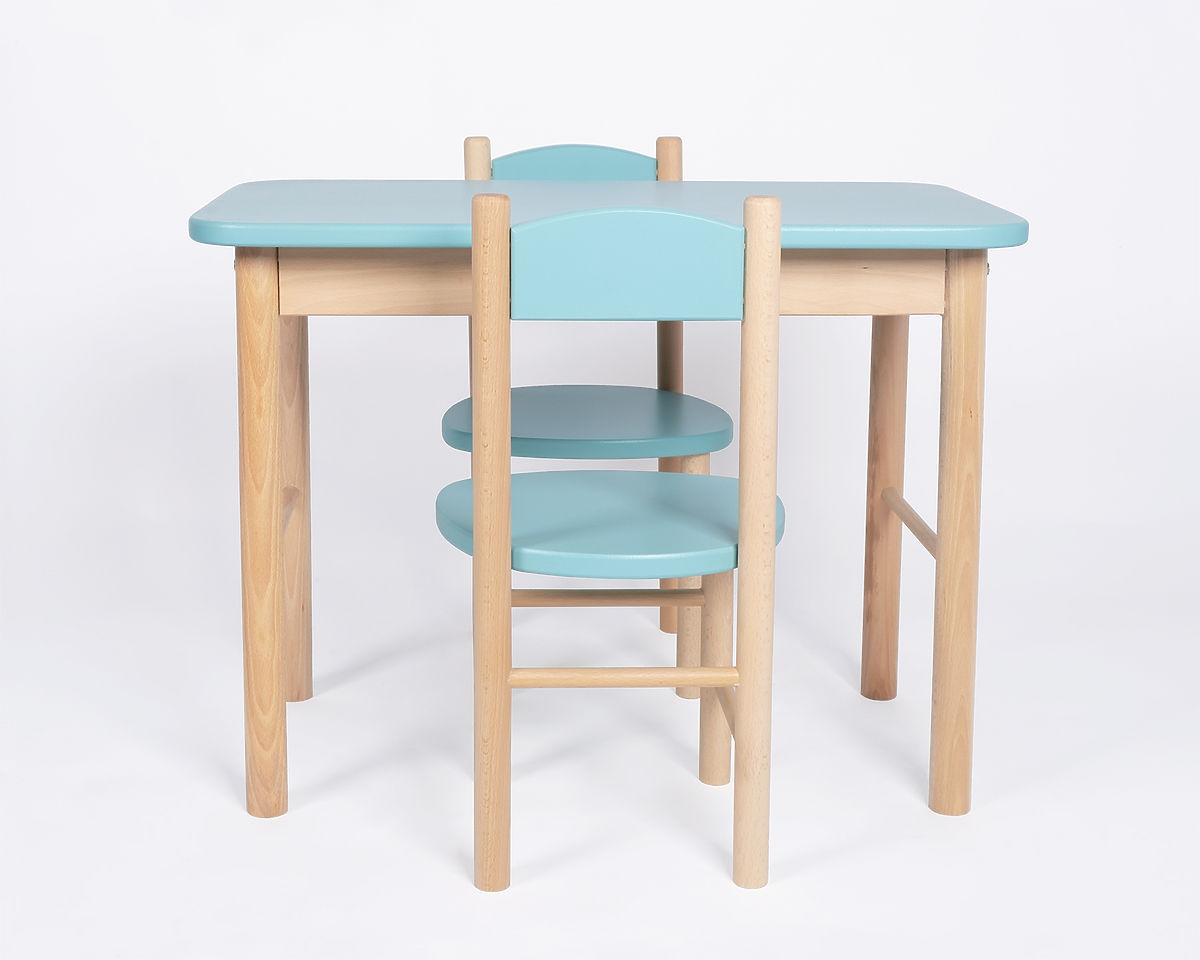 Dětský stoleček s židličkou by neměl chybět v žádném dětském pokojíku. Tento dřevěný set stolečku a židličky mátové barvy bude ideálním místem pro hraní, malování, svačinku či posezení s přáteli.