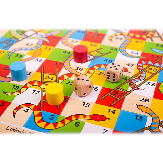 Hadi a žebříky , tradiční desková hra, kterou milují rodiny po celém světě. Hru si mohou užít až 4 hráči najednou. Tato sada obsahuje vše, co potřebujete pro hodiny soutěžní zábavy, včetně kostek a 4 barevných žetonů . Tato barevná dřevěná desková hra Hadi a žebříky je skvělý způsob, jak rozvíjet základní matematické dovednosti, jako je počítání , sčítání a odčítání . Jak hrát hru: Každý hráč si vybere barevnou figurku a umístí ji na hrací plán na číslo 1.Hru začíná nejmladší hráč, poté hra pokračuje ve směru hodinových ručiček.Hráč hodí kostkou a posune se na herním plánu podle počtu hozených bodů na kostce. Pokud hráč ukončí tah na začátku žebříku, posune se v herním plánu po žebříku až na vrchol žebříku. Pokud hráč ukončí tah na hadí hlavě, sklouzne se po hadu dolů až na konec jeho ocásku.Vyhrává hráč, který se jako první dostane na číslo 100. Hlavní vlastnosti: vyrobeno z vysoce kvalitních materiálů vyhovuje současným evropským bezpečnostním normám