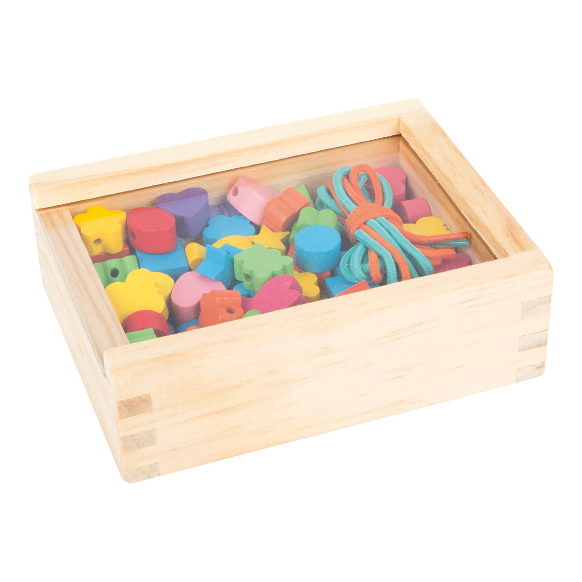Ať už to jsou hvězdičky, srdíčka nebo květinky, tato dřevěná krabička plná navlékacích korálků ze 100% FSC® dřeva nadchne každého. Kreativitě se meze nekladou, takže si děti mohou vytvořit náramek nebo náhrdelník dle svých představ. Navlékání korálků na šňůrku trénuje koordinaci ruka-oko a jemnou motoriku. Jaký šperk si vyrobíte jako první?