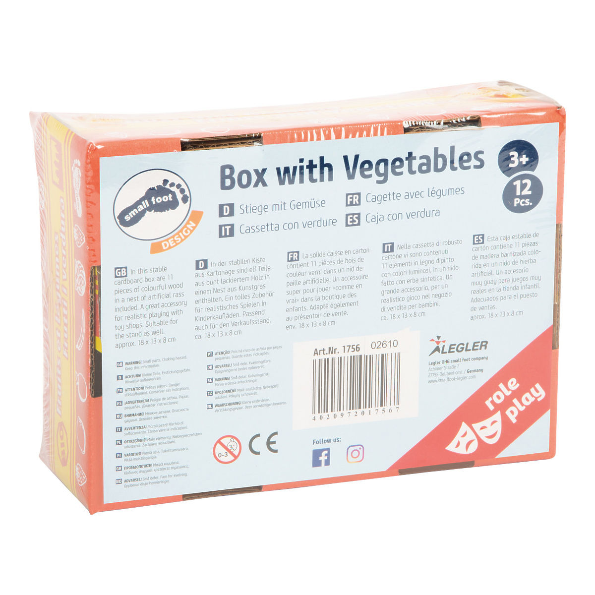 Všichni malí farmáři a farmářky i prodavači a prodavačky chtějí nabízet jen tu nejčerstvější a nekřupavější zeleninu! Pevná a podrobně dekorovaná kartonová bednička je vystlána papírovou slámou a vyplněna sytě zbarvenými maketami zeleniny. Lze ji uplatnit samostatně i jako doplněk kuchyňky, obchodu, či stánku. Hlavní vlastnosti:kartonová bedýnka s 11 ks dřevěných maket zeleninyvhodné jako doplněk kuchyňky, obchodu, či stánku