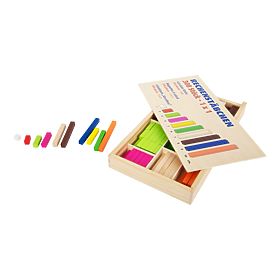 Klasická pomoc pří učení malé násobilky. Tyto tyčinky již pomohly rodičům vizuálně ztvárnit matematiku. Hlavní vlastnosti: 308 ks víceúčelových matematických tyčinek jako ideální úvod do světa číselpočítání, porovnávání a třídění přináší dítěti první základní matematické dovednostibaleno v dřevěné krabici s posuvným víkem