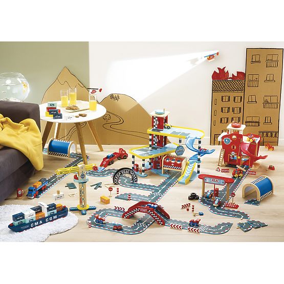 Velká garáž s rampou, která nabízí množství mechanických detailů, zejména výtah, zatahovací dveře, parkovací závoru, ale i čerpací stojan, či mycí kartáče. Její součástí je také dvojice autíček a helikoptéra.