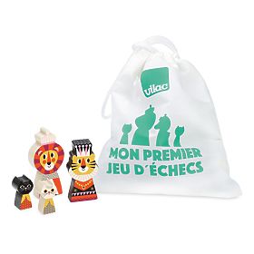 Barevné šachy pro nejmenší s dřevěnými figurkami zvířat. Lehce upoutají pozornost dětí a ty si tak snadněji osvojí princip hry. Figurky jsou uloženy v látkovém .. více