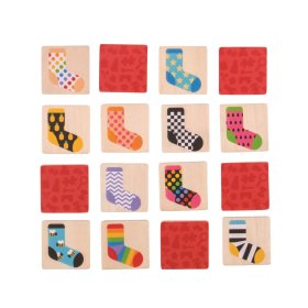 Tato hra s ponožkami určitě otestuje paměť a pozorovací schopnosti dětí! 32 dřevěných dílků je umístěno lícem dolů na stůl nebo podlahu. Hráči se musí střídat a .. více