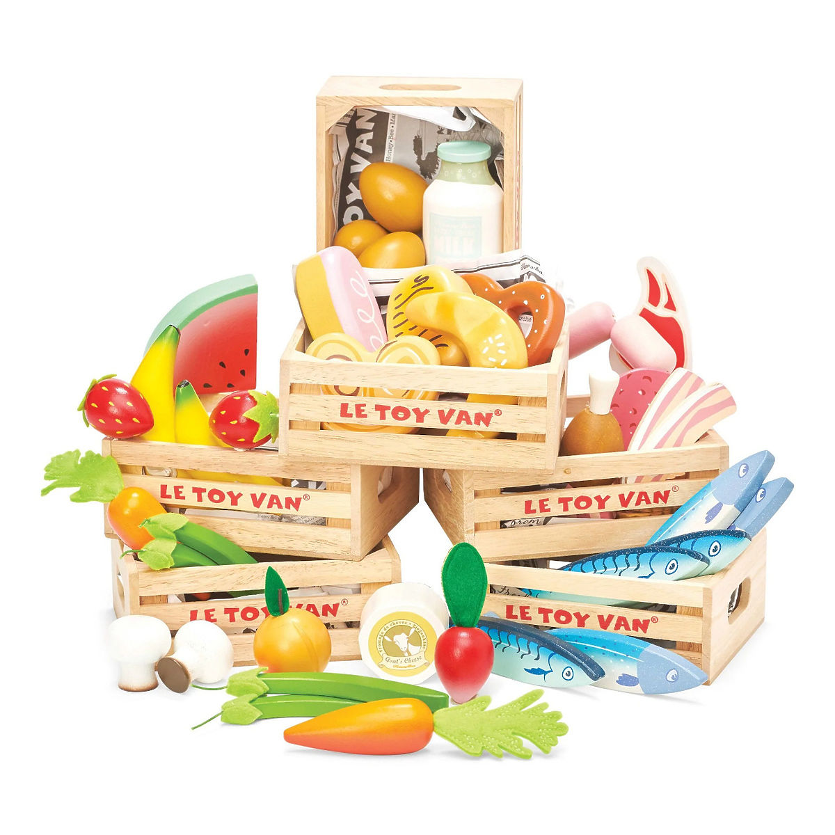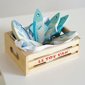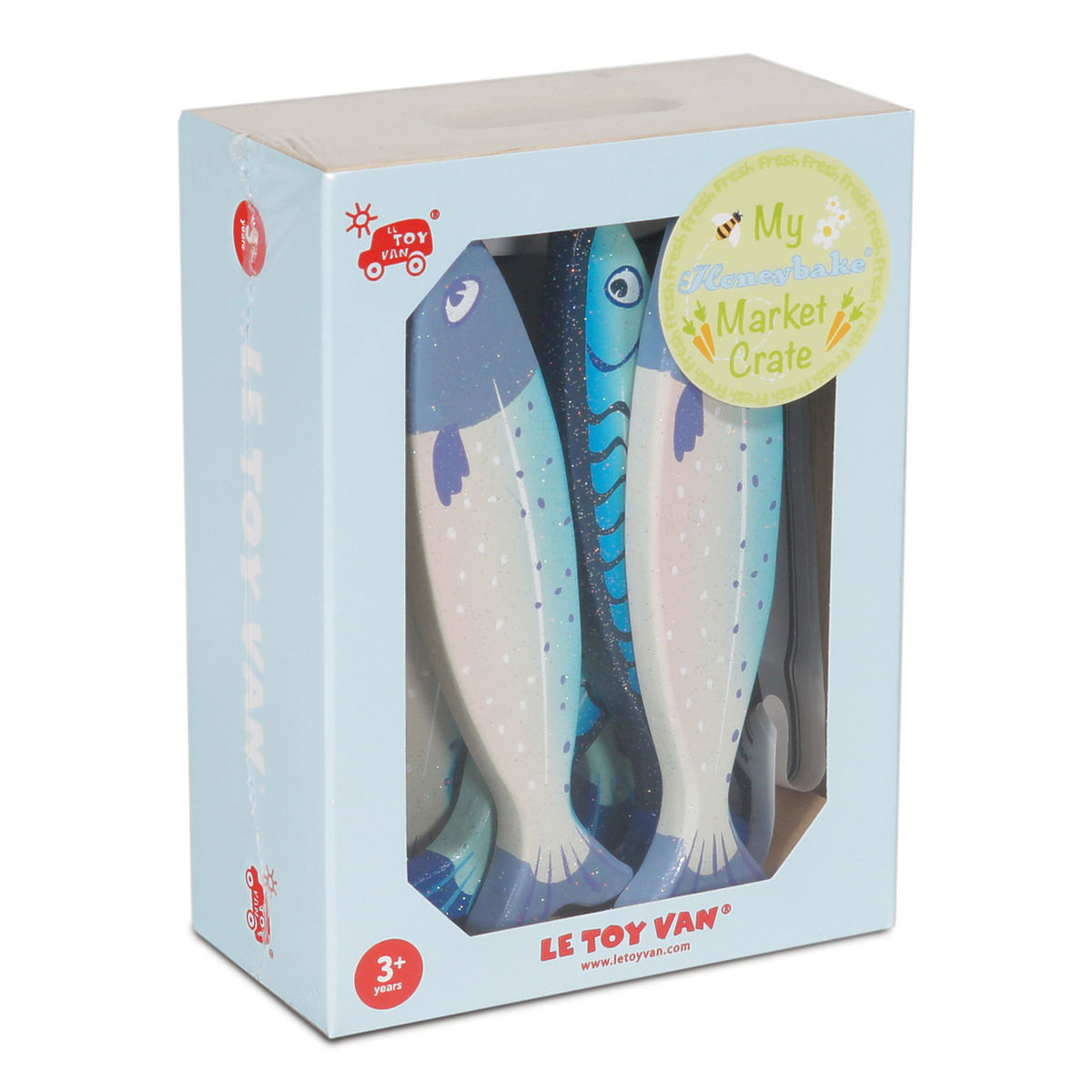 Perfektní den pro nákupy na trhu. Tato krásná dřevěná hračka je perfektní pro hraní na role, rozvíjí představivost dětí. Tato chutná bedýnka s rybami naučí děti o různých typech potravin a zdravé stravě. Každý díl je vyroben z odolného, udržitelného dřeva a malován netoxickými barvami. Velikost tak akorát pro dětské ruce, ideální hračka pro rozvoj koordinace ruka-oko a zlepšování jemné motoriky.Ideální jako dárek, hodí se k ostatním bedýnkám nebo jako vybavení trhového stánku či dětské kuchyňky. Hračky s účelemVšechny hračky firmy Le Toy Van jsou vyrobeny s cílem – aby dlouho vydržely. Designovány s láskou zkušenými řemeslníky za použití etických praktik a udržitelných materiálů, které jsou laskavější k naší planetě. Hlavní vlastnosti: kompatibilní s ostatními produkty z řady Honeybakevyrobeno eticky z udržitelného dřevatestováno dle nejpřísnějších standardůmalováno netoxickými barvami na bázi vodyinspiruje ke kreativní a představivé hřehračka pro hraní na role pomáhá s rozvojem dětí Honeybake kolekceHračky v této kolekci jsou vhodné k objevování, pomohou dětem s rozvojem představivosti, sociálních a verbálních dovedností a kognitivních funkcí. Tradiční design s moderními detaily děti jistě bude bavit. Honeybake je kolekce Le Toy Van, která vyhrála nejvíce ocenění a to za design, kvalitu, bezpečnost a také za vzdělávací a herní hodnotu.