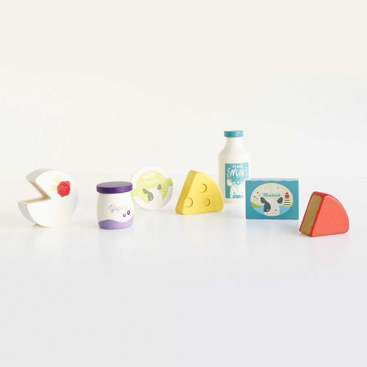 Nakupujte chytře! Dřevěná přepravka obsahuje čerstvé mléko, kostku másla, sklenici jogurtu, krabičku smetany a 3 chutné sýry pro všechny milovníky mléčných výrobku. Perfektní doplněk dětských trhových stánků i kuchyněk. Hodí s k ostaním bedýnkám Le Toy Van, v kterých najdete například ryby, zeleninu, ovoce, maso nebo vejce. Hlavní vlastnosti: Dřevěná přepravka se sýrem a mléčnými výrobkyKompatibilní s ostatními produkty Honeybake – vybavení kuchyně, prodejní stánkyHračka podporuje krativitu, představivost, pomáhá s rozvojem řeči a sociálních dovednostíVyrobeno z odolného a udržitelného kaučukového dřeva – dlouhotrvající zábava i starost o naši planetuMalováno netoxickými barvami, testováno dle nejpřísnějších standardů Honeybake kolekceHračky v této kolekci jsou vhodné k objevování, pomohou dětem s rozvojem představivosti, sociálních a verbálních dovedností a kognitivních funkcí. Tradiční design s moderními detaily děti jistě bude bavit. Honeybake je kolekce Le Toy Van, která vyhrála nejvíce ocenění a to za design, kvalitu, bezpečnost a také za vzdělávací a herní hodnotu.