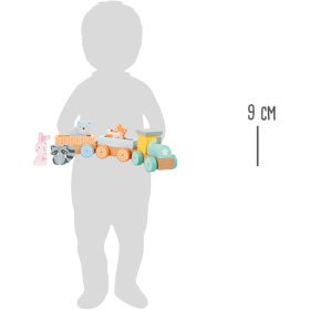 Hú, hú, přijíždí vlak! Tento vláček v pastelových barvách veze veselé pasažéry. Dva vagóny můžete jednoduše spojit. Malá lokomotiva se skládá z podvozku a dvou nasazovacích kostek. V balení také barevná liška, zajíc, mýval a medvěd, kteří už čekají na odjezd vlaku. Hlavní vlastnosti: 1 lokomotiva, 2 vagónyfigurky zvířátekdřevěná hračka v pastelových barvách