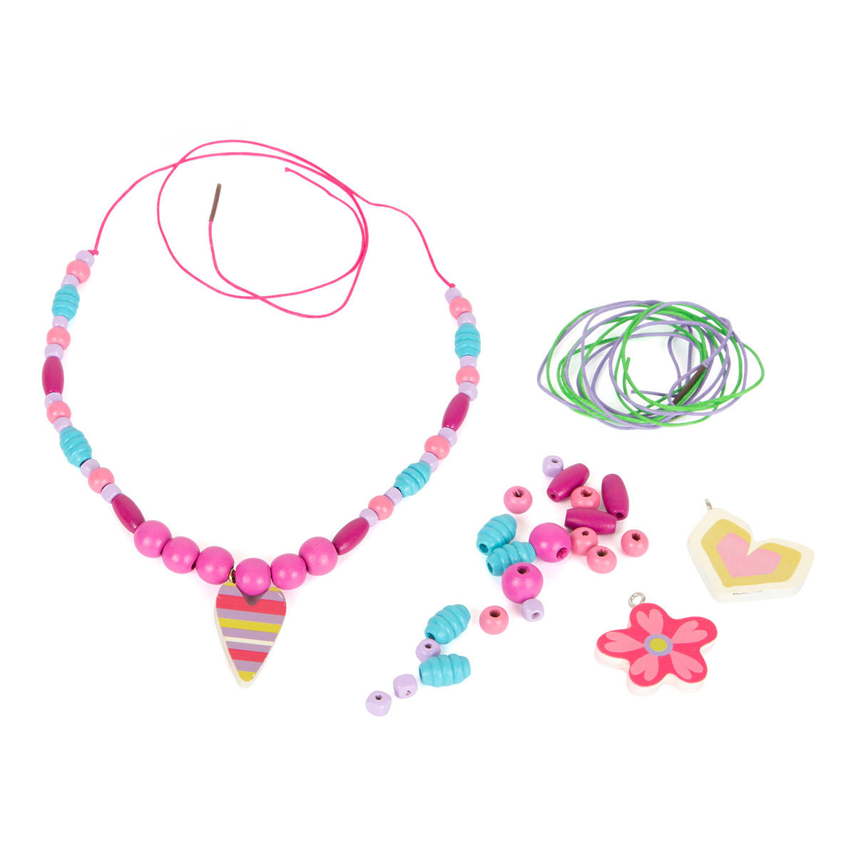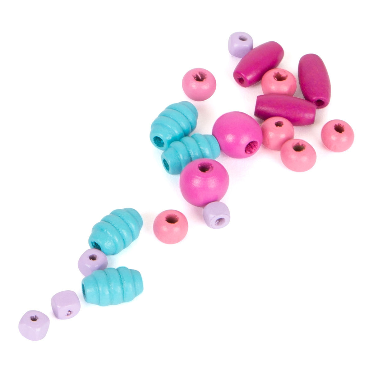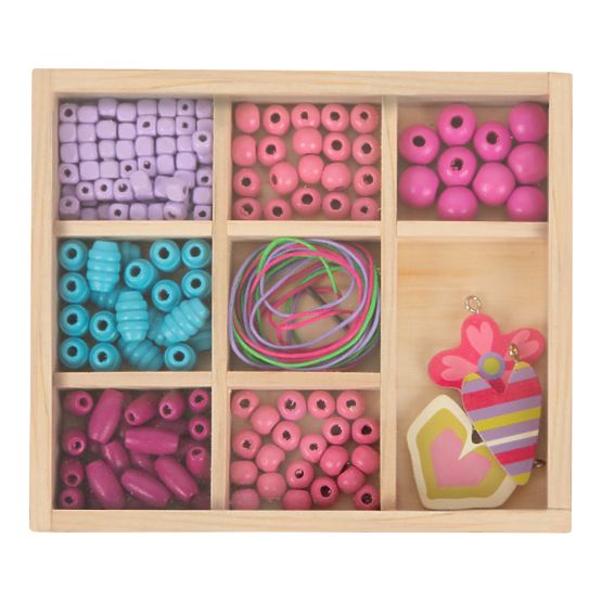 Vyrobte si své šperky s touto sadou korálků v pěti různých barvách a tvarech. Korálkový set doplňují tři přívěsky s různými motivy v hravém designu a tři barevně sladěné šňůry. Vše je uloženo v dřevěné krabici. Navlékáním korálků je podporována jemná motorika dětí. Hlavní vlastnosti: pět různých barev a tvarůpodporuje jemnou motoriku