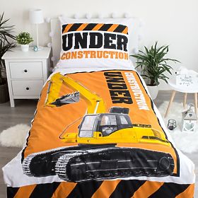 Babynabytek.cz » Lůžkoviny / Povlečení / Bavlněné povlečení / Ložní Povlečení se svítícím efektem Bagr 140 x 200 cm + 70 x 90 cm