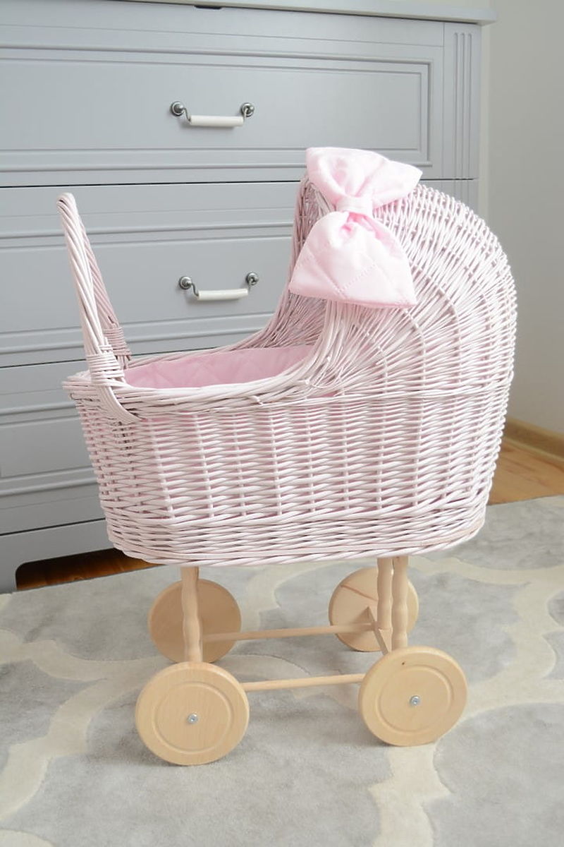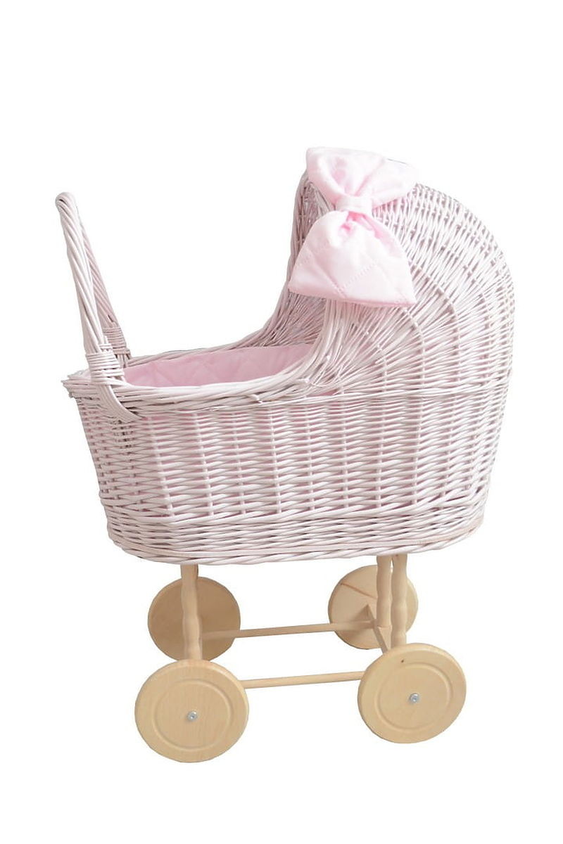 Babynabytek.cz » Hračky / Domečky pro panenky / Panenky do domečků / Vysoký proutěný kočárek pro panenky - růžový