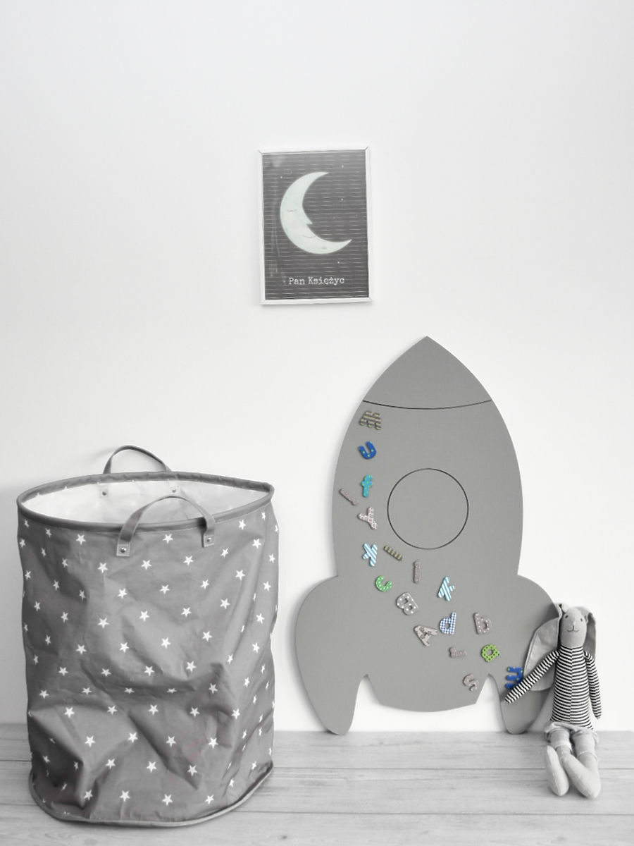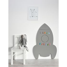 Magnetická a křídová tabule ve tvaru rakety je jako stvořená pro malé vesmírné fanoušky. Skvělé se hodí do chlapeckých i dívčích pokojů. Pomocí křídy mohou děti vytvářet jedinečná umělecká díla. Díky magnetům si mohou vystavit oblíbené obrázky či fotografie. Zábavný design tabule se stane centrem dětské fantazie.