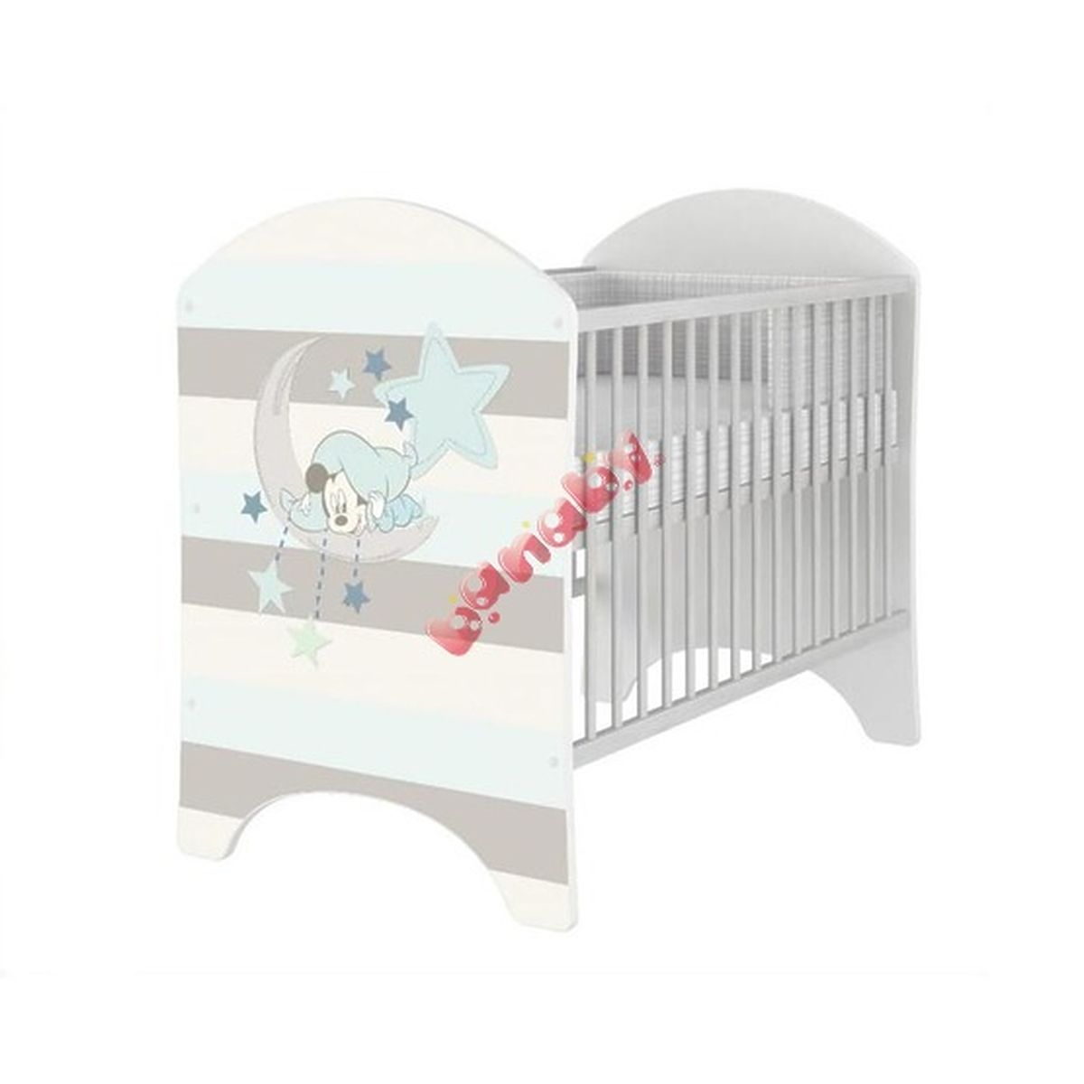 Klasická dětská postýlka z Disney kolekce s motivem malého myšáka Mickeyho. Postýlka v rozměru 120x60 cm je vhodná pro děti od narození.