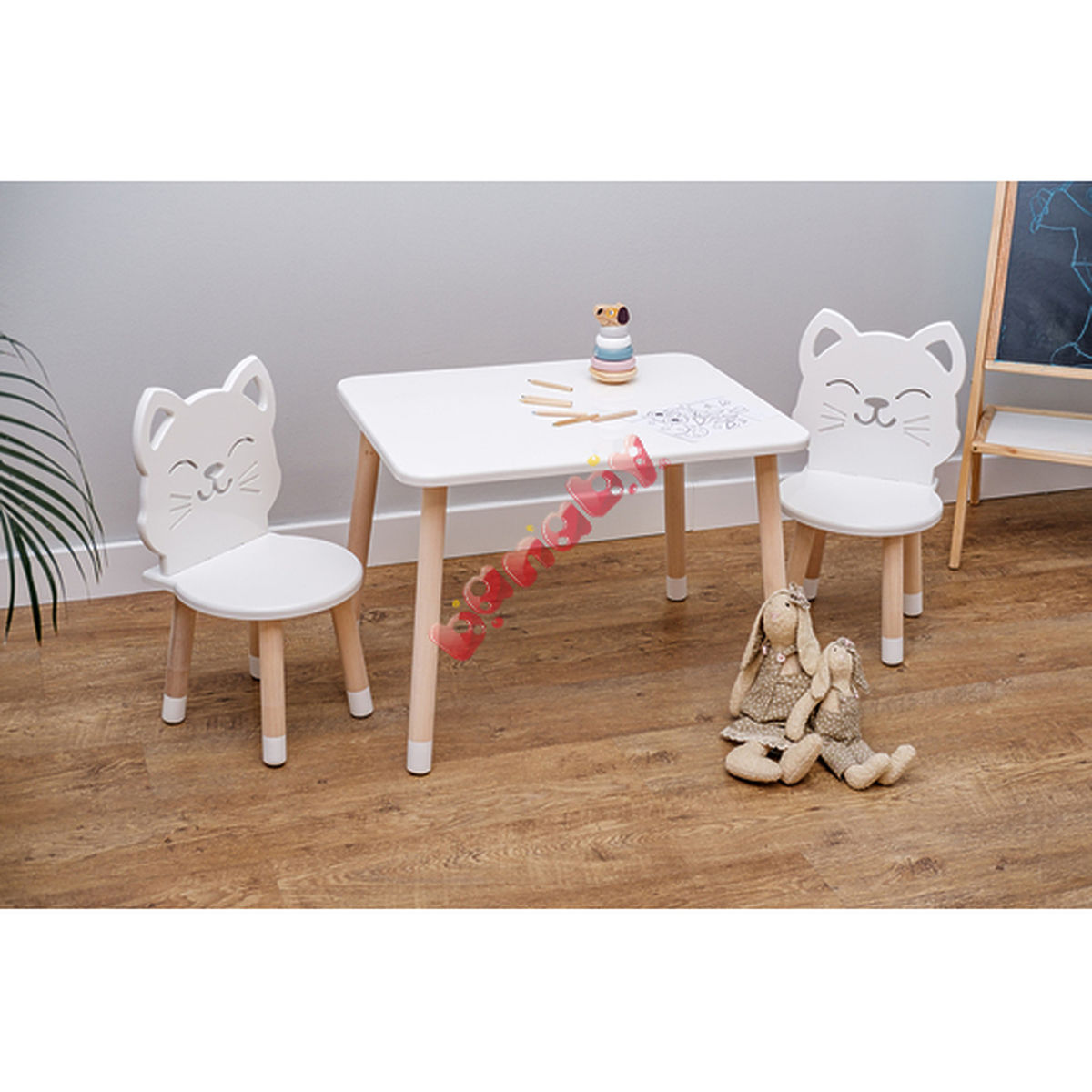 Krásný dřevěný set stolečku a dvou židliček v podobě kočičky, který si vaše děti zaručeně zamilují. Tento originální set vytvoří útulný koutek na malovaní, čtení nebo svačinku.