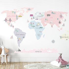 Babynabytek.cz » Dekorace / Nástěnné a okenní / Samolepky na zeď / Samolepka na zeď Mapa světa - růžová
