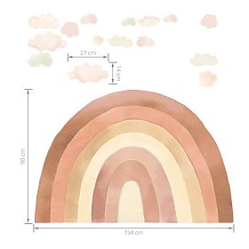 Duhové samolepky jsou díky své velké ploše ideální k nalepení za postel, nebo do dětského koutku. Jemné světlé barvy dodávají stěně osobitý charakter.