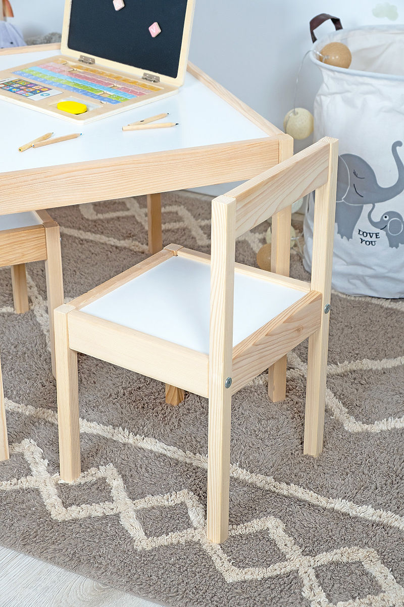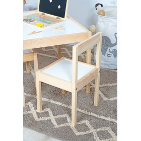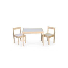 Tato sada v minimalistickém stylu se snadno přizpůsobí jakémukoli prostředí a bude vhodná jak do dětských pokojíků tak třeba heren. Jedná se o maximálně odolný set stolu a židlí z vysoce kvalitního borovicového dřeva.