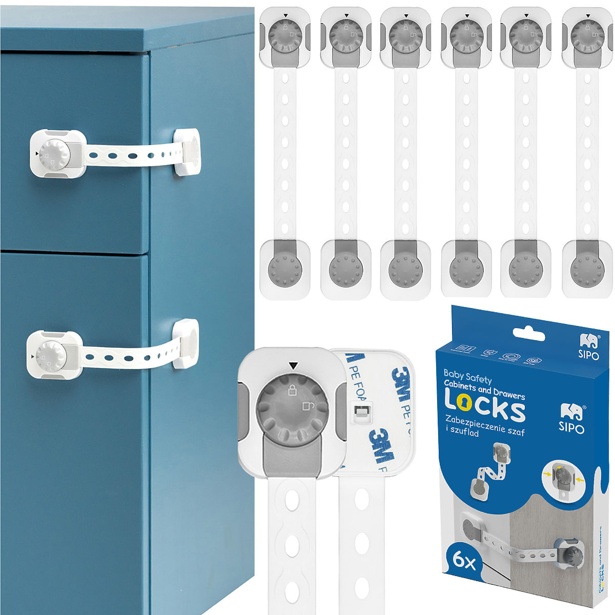 Babynabytek.cz » Vše pro kojence / Bezpečnost dětí / SIPO Multifunkční, chytrý zámek na skříně a zásuvky - 6ks