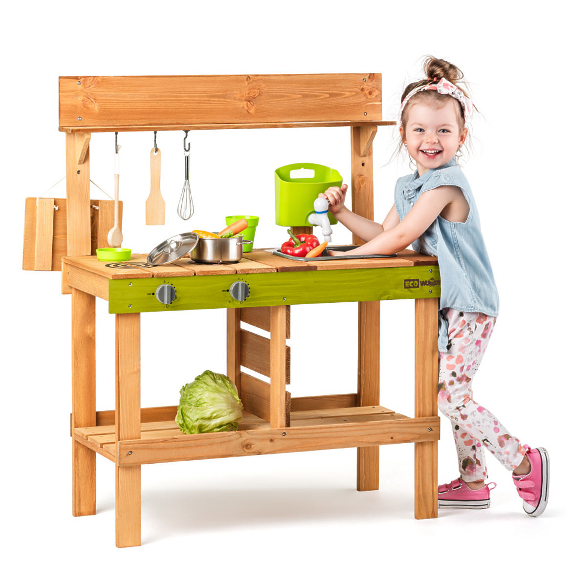 Umožněte dětem venkovní zábavu v podobě zahradního vaření, umývání nádobí a procvičování praktických dovednosti. Hra s venkovní dětskou kuchyňkou děti zabaví a dá jim pocit samostatnosti.